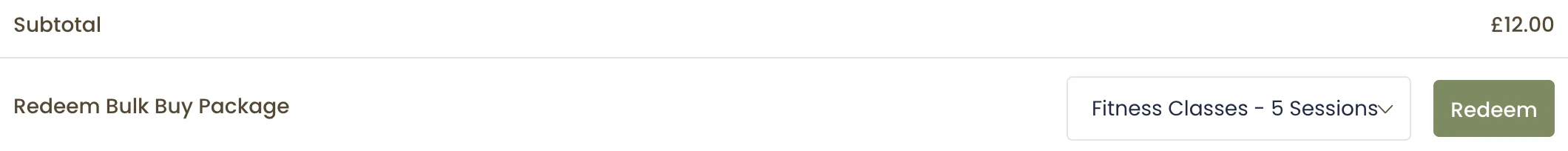 Once you have selected your class, on the summary tab select your purchased package and click 'Redeem'